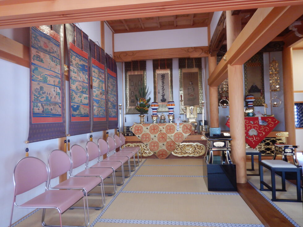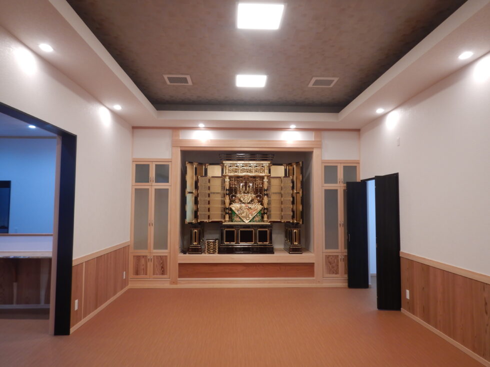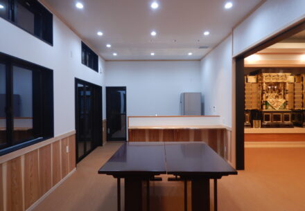 ご葬儀や法事お寺の行事まで一式使える様にしてバリアフリーで車いすも入れる様になっています。